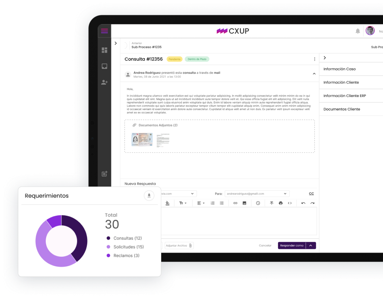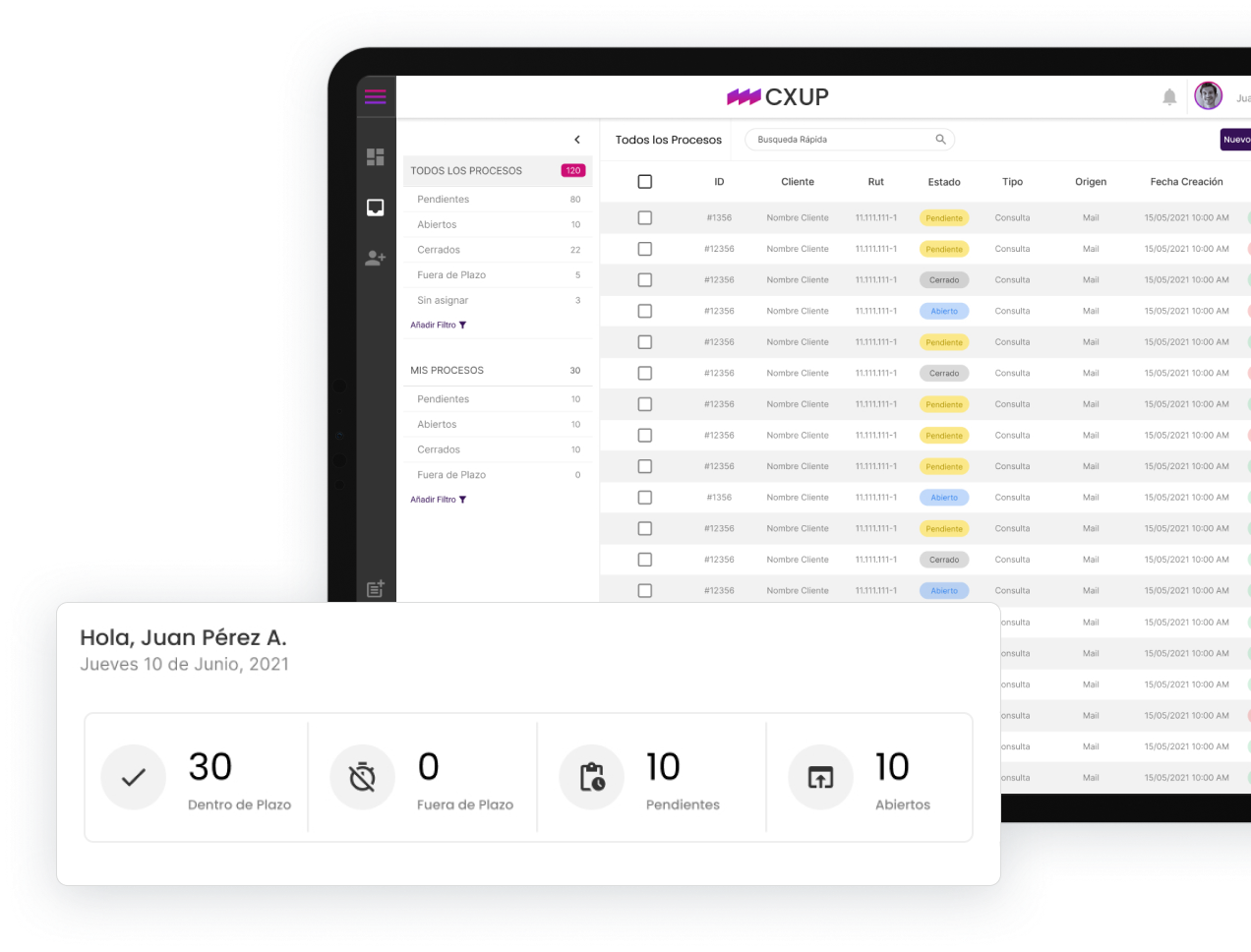 En CXUP la trazabilidad de los requerimientos por parte del cliente, se visualizan como estados pendientes y cerrado, existiendo un control total de las respuestas.